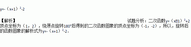 把二次函数的图象绕原点旋转180°后得到的图象解析式为________.
