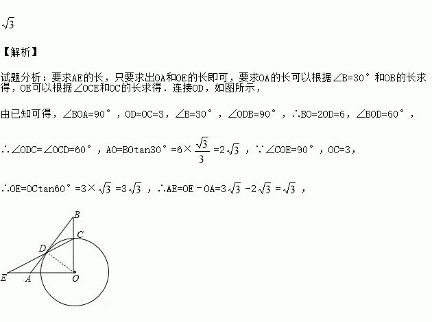如图,半径为3的⊙O与Rt△AOB的斜边AB切于点D,交OB于点C,连接CD交直线OA于点E,若∠B=30°,则线段AE的长为 .