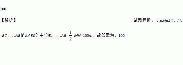 如图,A,B两点被池塘隔开,不能直接测量其距离.于是,小明在岸边选一点C,连接CA,CB,分别延长到点M,N,使AM=AC,BN=BC,测得MN=200m,则A,B间的距离为________m.
