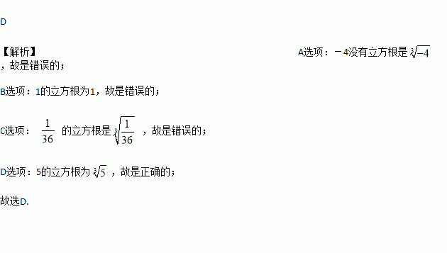 C. 的立方根是 D. 5的立方根为