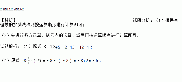 (1)8+(﹣10)﹣(﹣5)+(﹣2); (2)