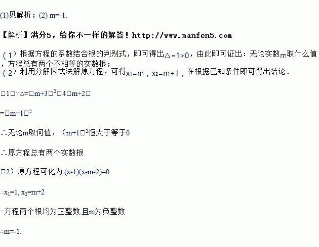 (1)求证:无论实数m取何值,方程总有两个实数根;