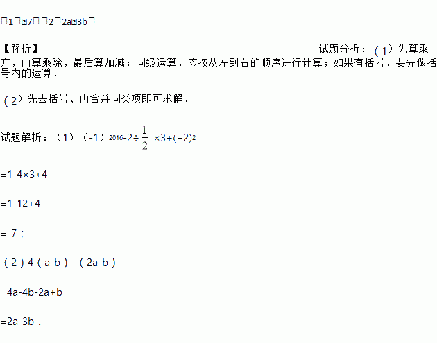(1);(2)4(a﹣b)﹣(2a﹣b).