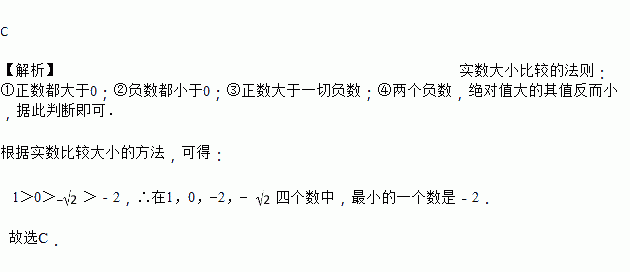在1,0,-2,- 四个数中,最小的数是( )