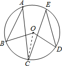 分析:连接OC,利用同弧所对的圆心角等于所对圆周角的2倍,得到∠BOC=2∠A,∠COD=2∠E,由∠A与∠E的度数即可求出∠BOD的度数.