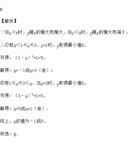 已知二次函数y=(x﹣h)2+1(h为常数),在自变量x的值满足1≤x≤3的情况下,与其对应的函数值y的最小值为5,则h的值为( )