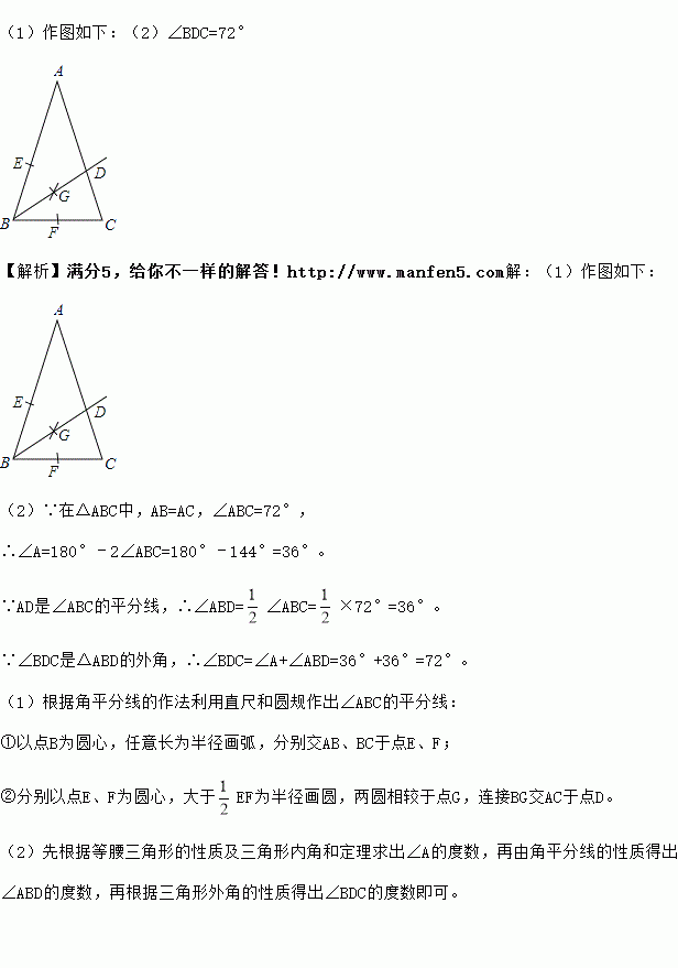 如图,在△ABC中,AB=AC,∠ABC=72°.