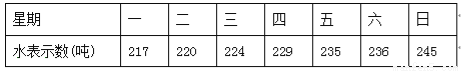 李娟同学为考察学校的用水情况,她在4 月份一周内同一时刻连续记录了水表的示数,记录结果如下表: