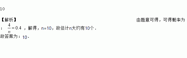 10 【解析】由题意可得,可得概率为: ,解得,n=10,故估计n大约有10个. 故答案为:10.