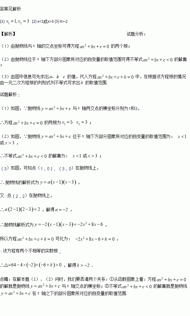(3)若方程ax2+bx+c+k=0有两个不相等的实数根,求k的取值范围.