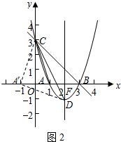 (3)如图2,作点A(1,0)关于y轴的对称点A′,则A′(-1,0). ![]()