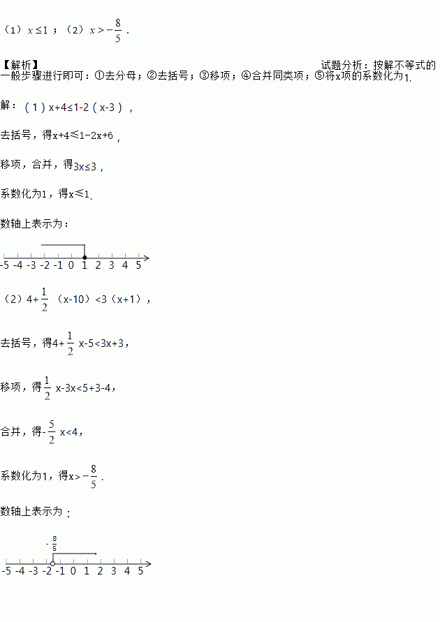 解下列不等式,并把它的解在数轴上表示出来(数轴需用黑笔描画):