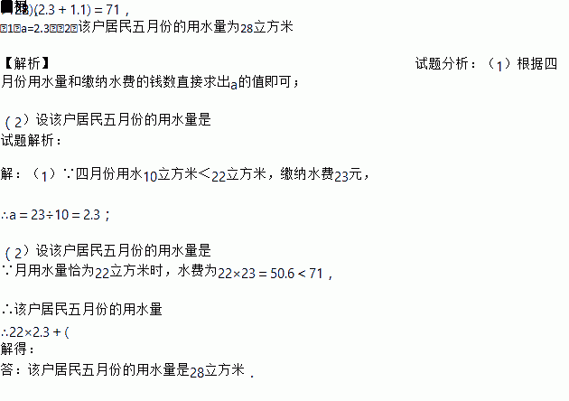 (2)若该户居民五月份所缴水费为71元,求该户居民五月份的用水量。