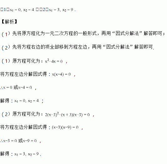 (1)解方程:(x-3)(x-1)=3; (2)解方程:2(x-3)2=x2-9.