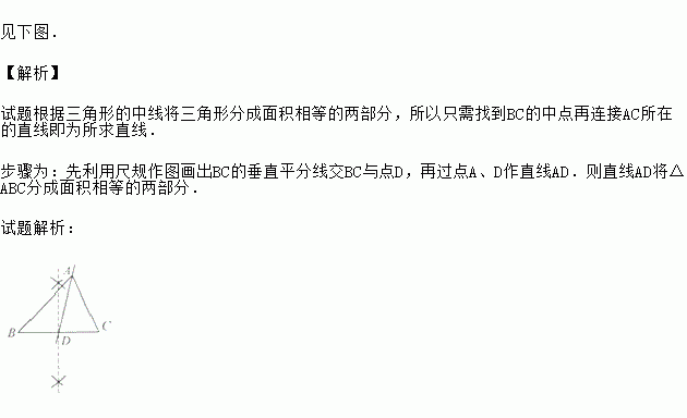 (本题满分5分)如图,已知△ABC,请用尺规过点A作一条直线,使其将△ABC分成面积相等的两部分,(保留作图痕迹,不写作法)