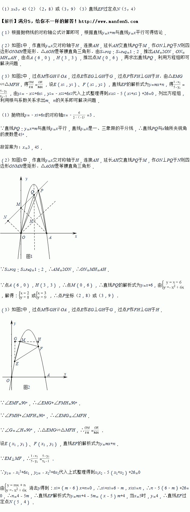 如图1,抛物线y=﹣x2+6x与x轴交于O、A两点,点P在抛物线上,过点P的直线y=x+m与抛物线的对称轴交于点Q.