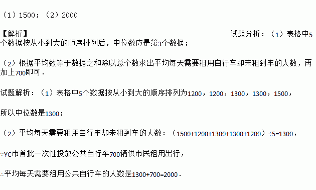 YC市首批一次性投放公共自行车700辆供市民租用出行,由于投入数量不够,导致出现需要租用却未租到车的现象,现将随机抽取的某五天在同一时段的调查数据汇成如下表格.