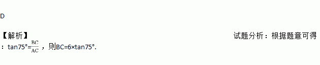 A. 6sin75º米 B. 米 C. 米 D. 6tan75º米