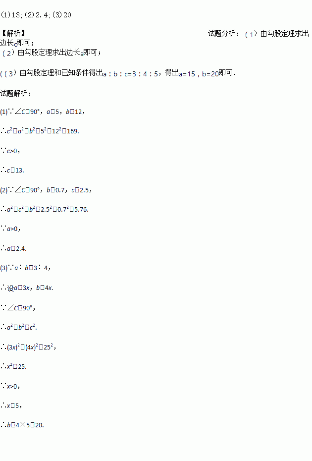 (3)若a∶b=3∶4,c=25,求b.