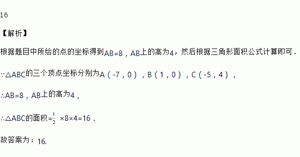 已知△ABC三个顶点的坐标分别是A(-7,0),B(1,0),C(-5,4),那么△ABC的面积等于________.