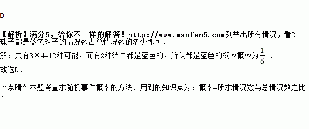 一个袋中有4个珠子,其中2个红色,2个蓝色,除颜色外其余特征均相同,若从这个袋中任取2个珠子,都是蓝色珠子的概率是( )