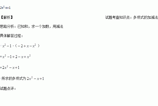 一个多项式加上得到,则这个多项式是 .