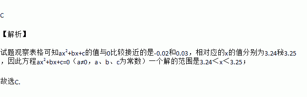 根据下列表格的对应值,判断方程ax2+bx+c=0(a≠0,a、b、c为常数)一个解的范围是( )