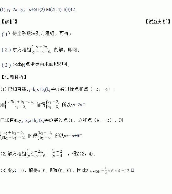 (3)若直线y2与x轴交于点N,试求△MON的面积.