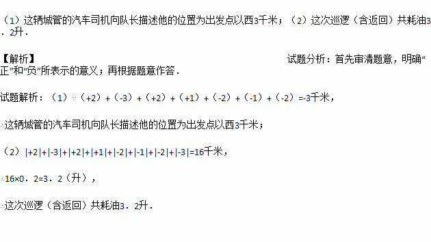 为了有效控制酒后驾车,西安市城管的汽车在一条东西方向的公路上巡逻,如果规定向东为正,向西为负,从出发点开始所走的路程为: