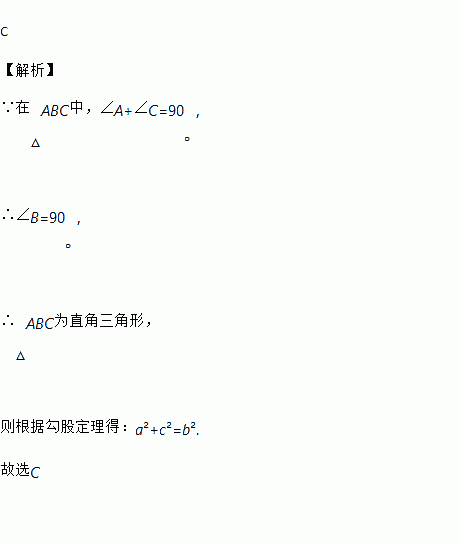 在△ABC中,∠A,∠B,∠C的对应边分别是a,b,c,若∠B=90°,则下列等式中成立的是( )
