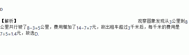 某市乘出租车需付车费y(元)与行车里程x(千米)之间函数关系的图象如图所示,那么该市乘出租车超过3千米后,每千米的费用是( )