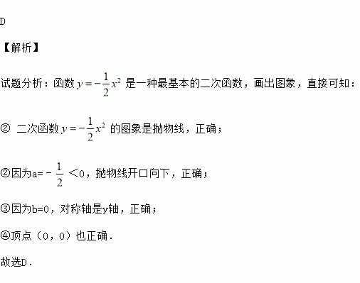 的图象说法:①图象是一条抛物线;②开口向下;③对称轴是y轴;④顶点(0,0),其中正确的有( )