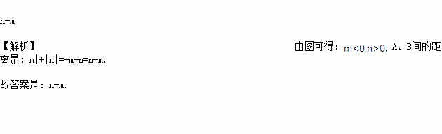 如图,点A、B在数轴上对应的数分别为m、n,则A、B间的距离是__________________(用含m、n的式子表示)