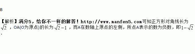如图,以数轴的单位长度线段为边作一个正方形,以表示数1的点为圆心,正方形对角线长为半径画弧,交数轴于点A,则点A表示的数是( )