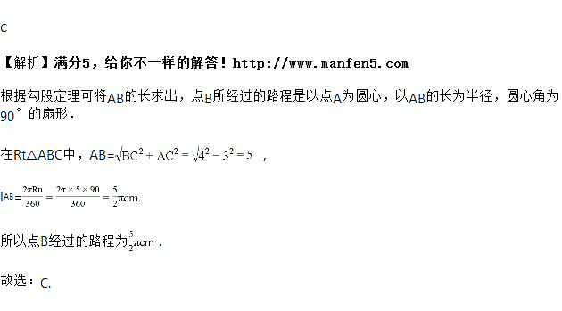 在中,,,.把绕点顺时针旋转后,得到,如图所示,则点所走过的路径长为( )