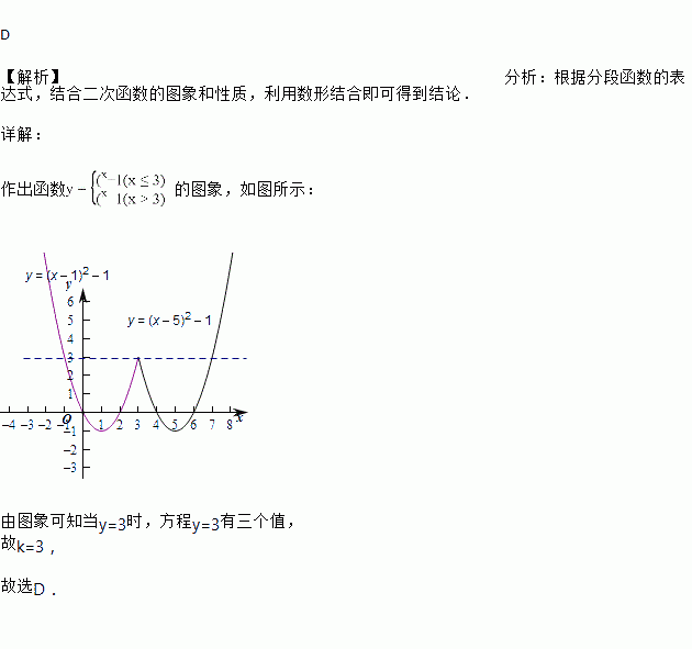 ,则使y=k成立的x值恰好有三个,则k的值为( )