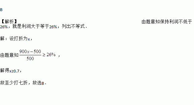 某商品原价500元,出售时标价为900元,要保持利润不低于26%,则至少可打( )