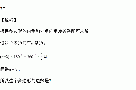 已知一个多边形的内角和是外角和的倍,则这个多边形的边数是________.
