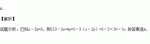 已知x﹣2y=3,那么代数式3﹣2x+4y的值是( )
