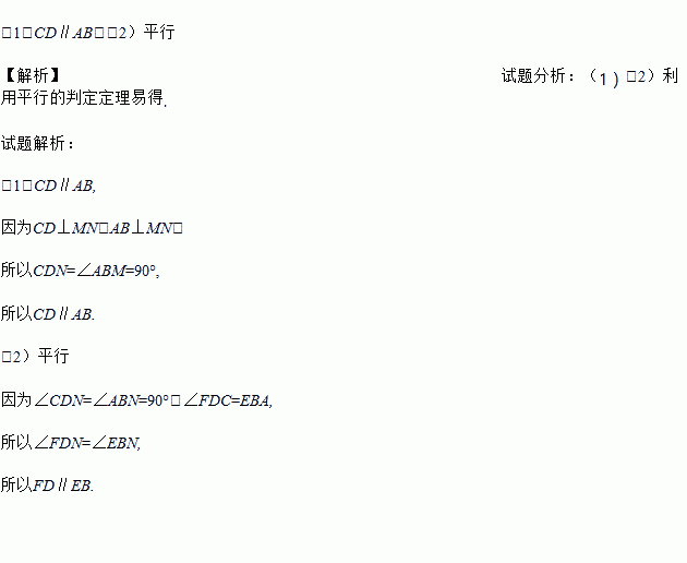 如图,AB⊥BD,CD⊥MN,垂足分别是B、D点,∠FDC=∠EBA.