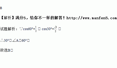 当A为锐角,且<cos∠A<时,∠A的范围是( )