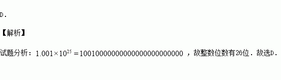 用科学记数法表示的数1.001×1025的整数位数有 ( )