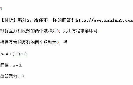 若2a﹣4与﹣2互为相反数,则a=_____.