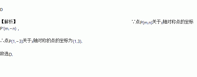 在平面直角坐标中,点P(1,﹣3)关于x轴的对称点坐标是( )