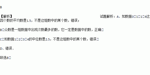 A. 平均数一定是这组数中的某个数 B. 众数一定是这组数中的某个数
