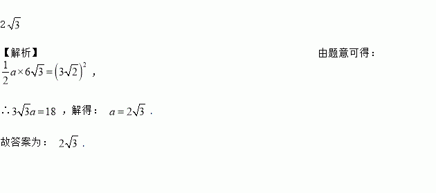 若一个三角形的一边长为a,这条边上的高为6,其面积与一个边长为3的正方形的面积相等,则a=________.