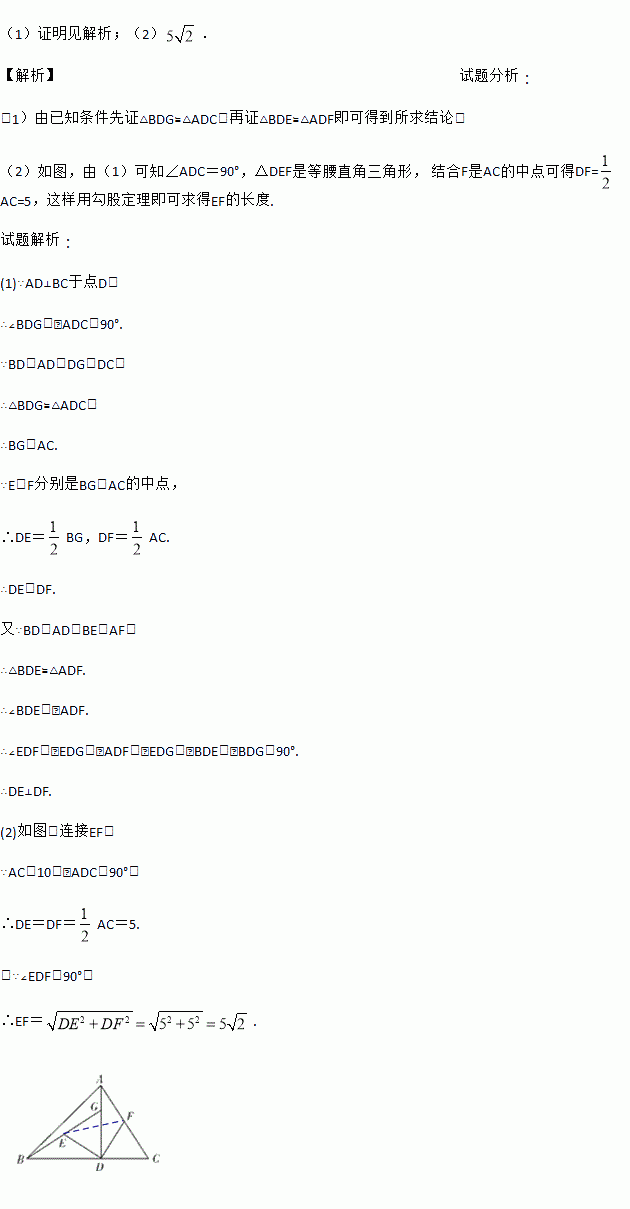 如图,在△ABC中,AD⊥BC于D,BD=AD,DG=DC,E,F分别是BG,AC的中点.