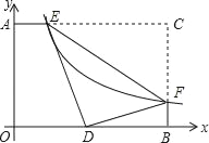如图,在矩形AOBC中,OB=4,OA=3,分别以OB,OA所在直线为x轴、y轴建立平面直角坐标系,F是BC边上的点,过F点的反比例函数y=(k>0)的图象与AC边交于点E.若将△CEF沿EF翻折后,点C恰好落在OB上的点D处,则点F的坐标为_____.
