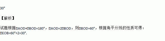 如图,直线AB、CD相交于点O,OE平分∠BOD,若∠AOD=2∠DOB,则∠EOB= .
