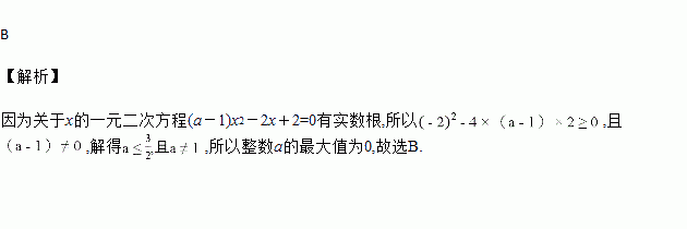 若关于x的一元二次方程(a-1)x2-2x+2=0有实数根,则整数a的最大值为( )
